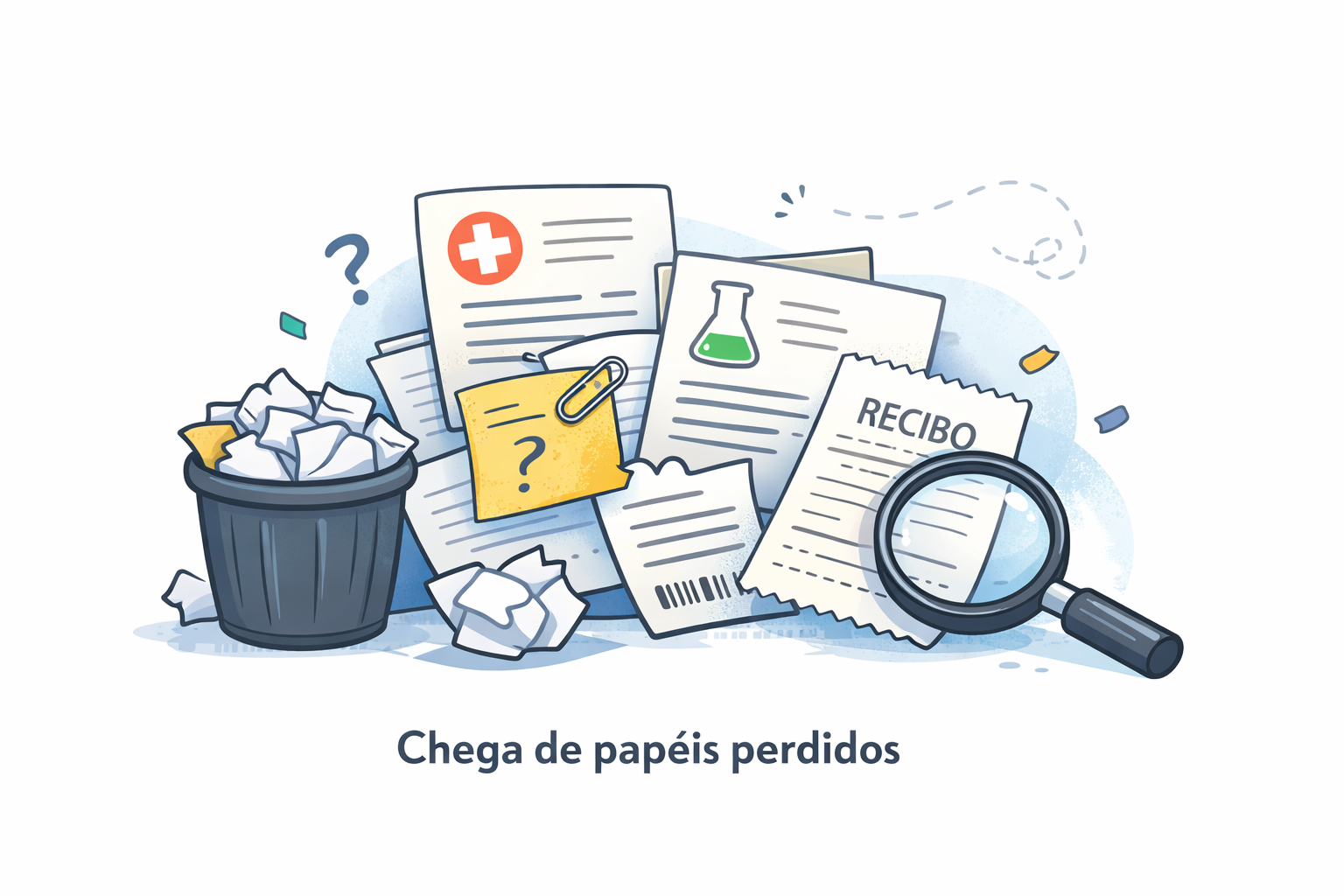 e até aqueles protocolos em papel que a gente sempre perde.