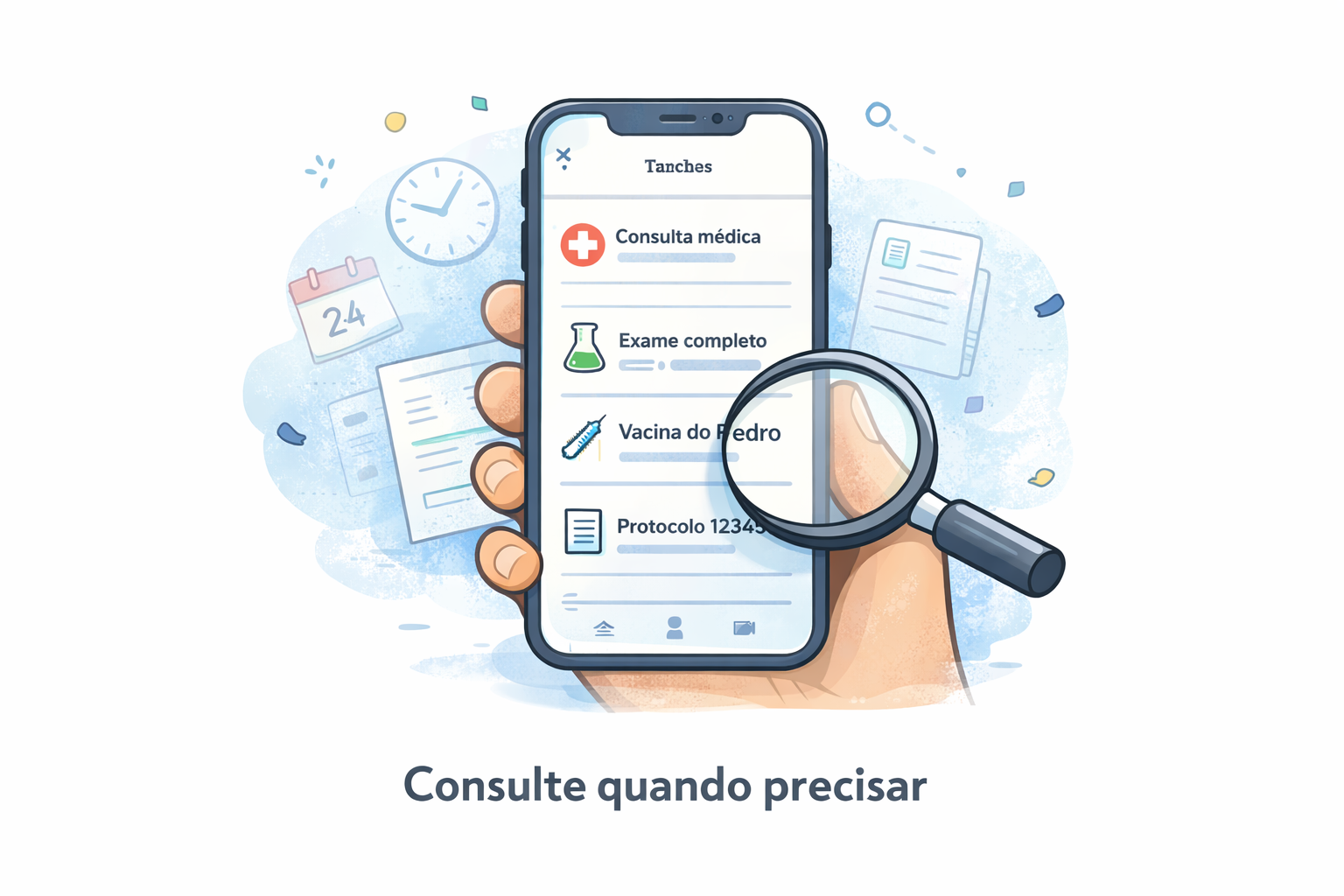Guarde protocolos, datas e informações que antes ficavam soltos no papel.